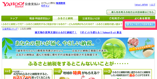 そのメールにてリンクURLが貼ってあるYahoo!公金支払い(ふるさと納税)のページへアクセスします。